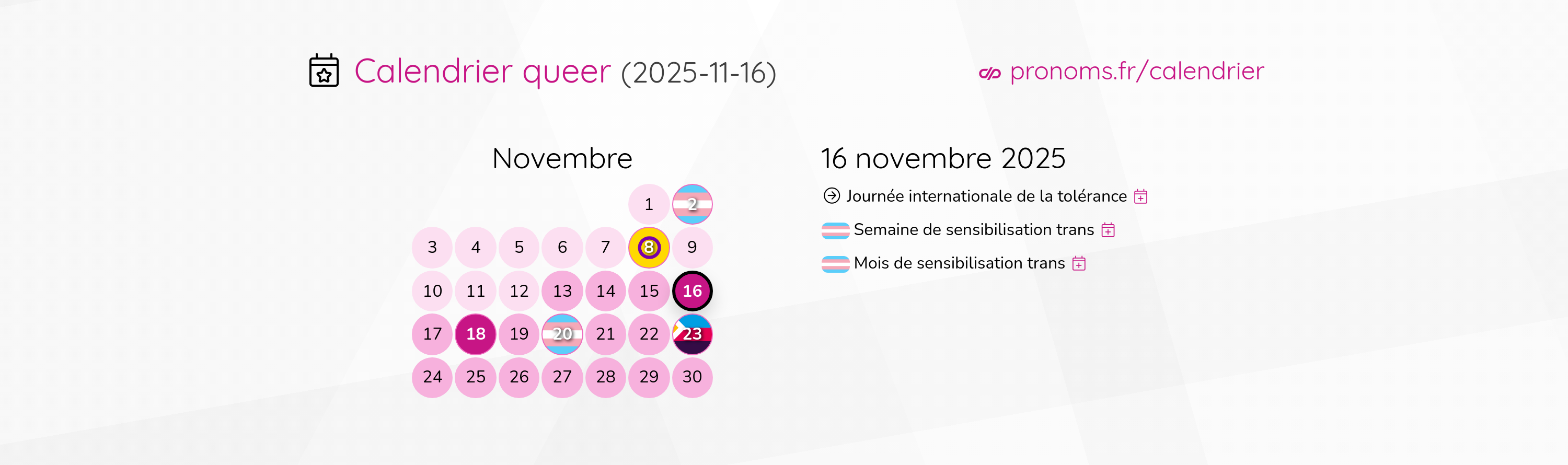 Texte alternatif : A rectangular flag with five equal-width horizontal stripes: blue, pink, white, pink, blue Mois de sensibilisation trans