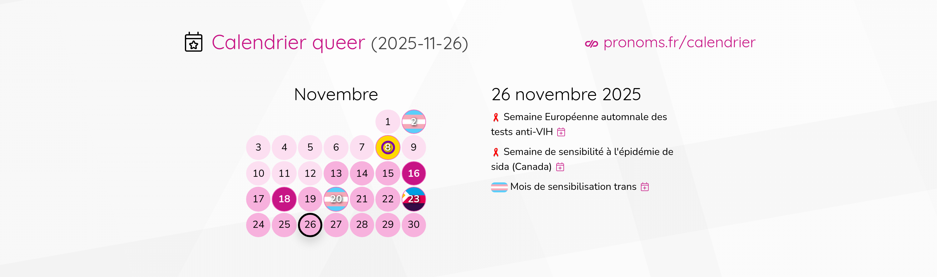 Texte alternatif : A rectangular flag with five equal-width horizontal stripes: blue, pink, white, pink, blue Mois de sensibilisation trans